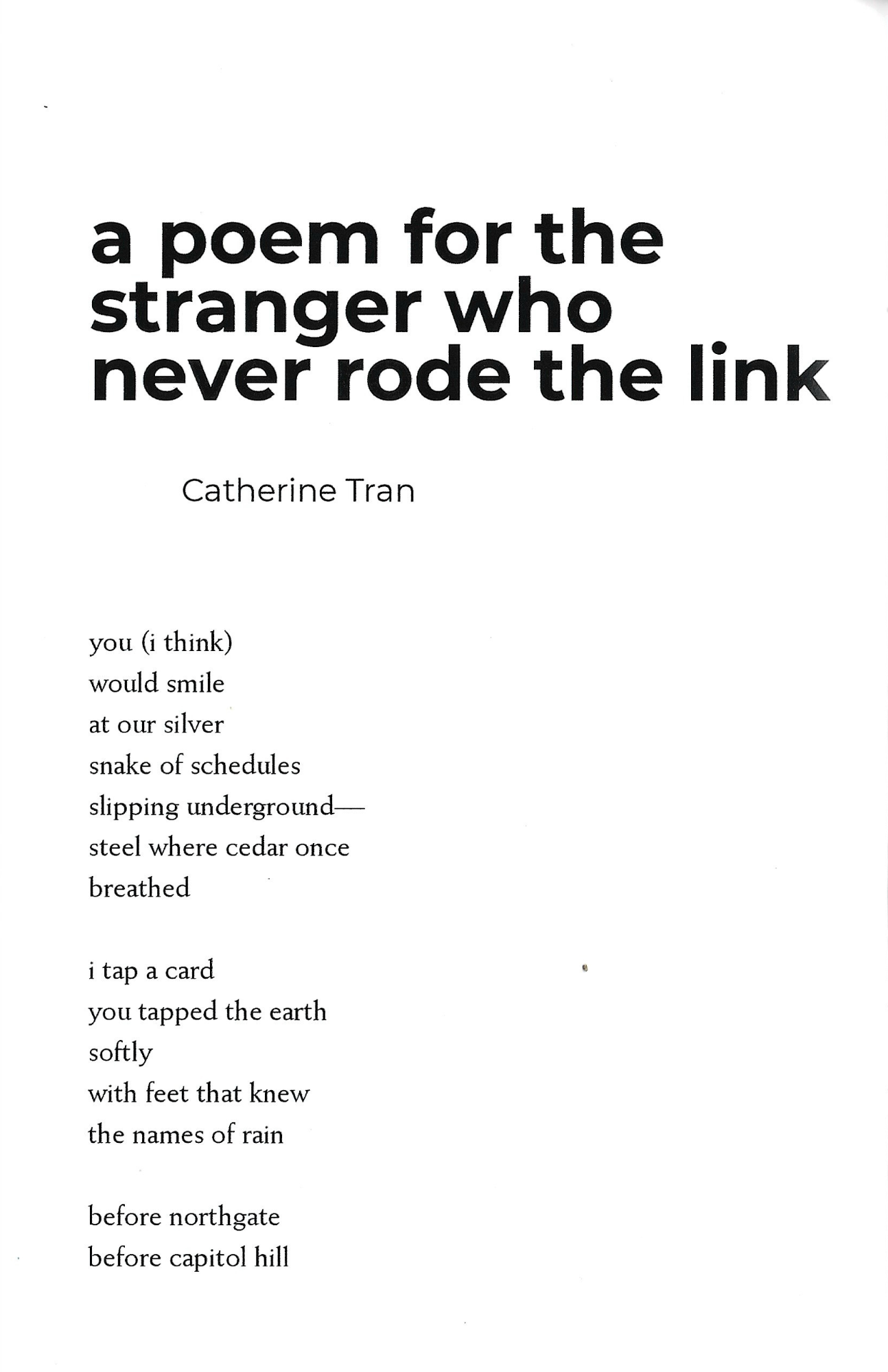 There is something special about seeing a poem printed on a physical page, knowing that somewhere a stranger might be flipping through it on a rainy Seattle afternoon, or folding it back into a backpack to read again later.